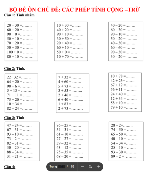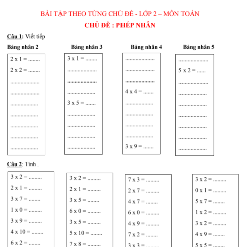 Bài tập theo chủ đề Toán 2