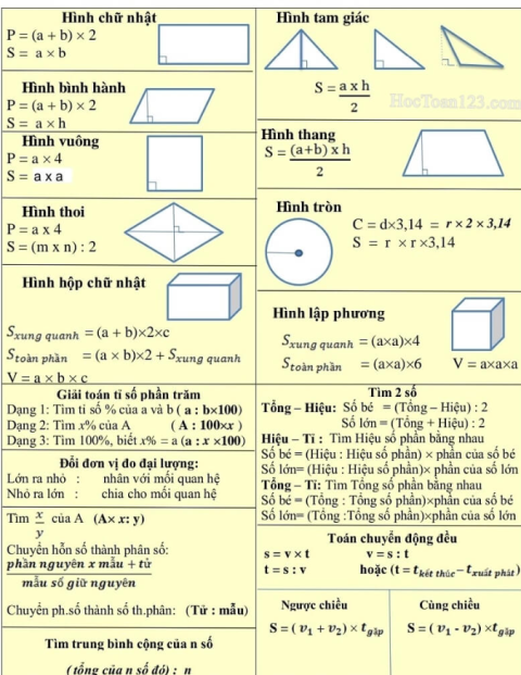 TỔNG HỢP CÔNG THỨC TOÁN LỚP 4 & 5.
